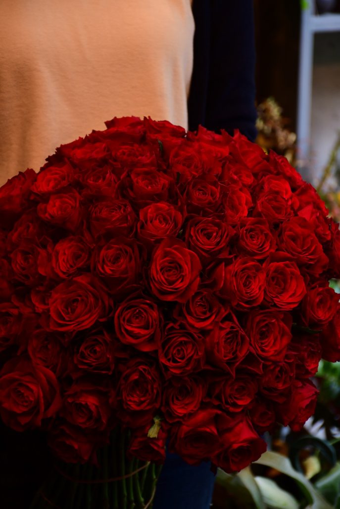 紳士な男性から赤薔薇を100本の花束のご依頼