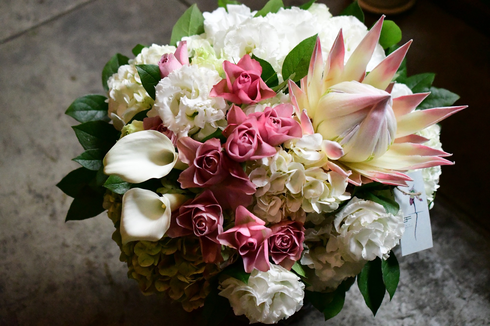 キングプロテアを使ってスタイリッシュなアレンジメントのご注文